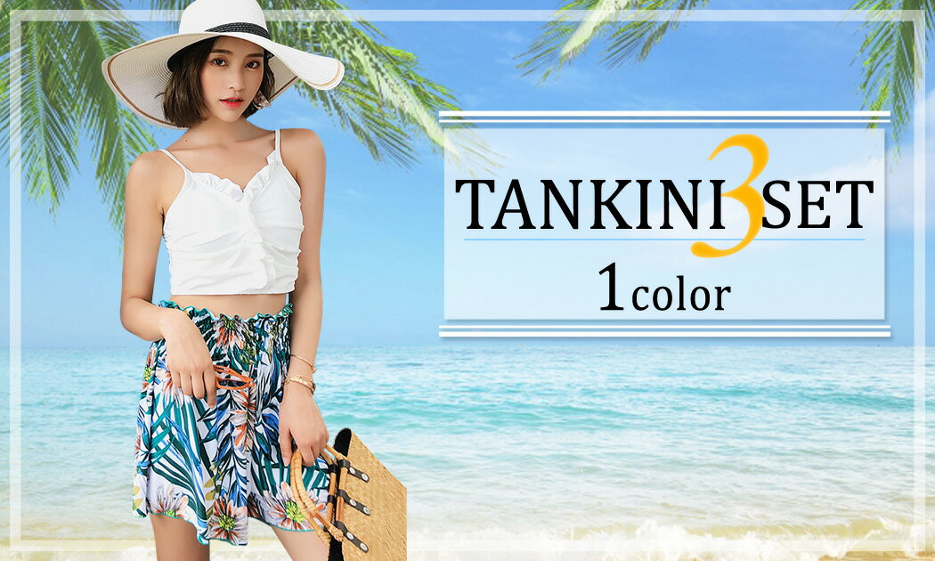 タンキニ 水着 レディース 体型カバー水着 ショートパンツ 3点セット 20代 30代 40代 ママ水着 セクシー フリル ボタニカル 上下別柄 セパレート シャーリング オトナ女子 パッド付き 盛れる 小胸 お腹 お尻 太もも カバーアップ 夏 リゾート ホワイト 白 おしゃれ 女性用