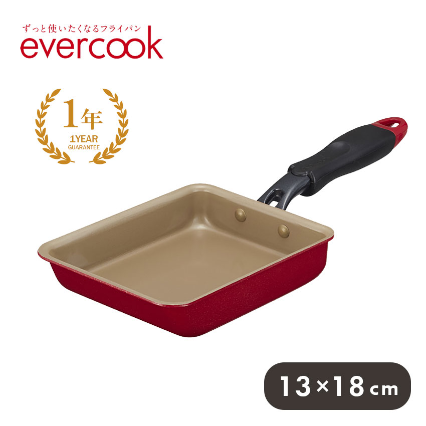 【今だけクーポン配布中】エバークック フライパン 卵焼き13cm レッド EVERCOOK ミニ EFPTK13RD 保障 キッチン 用品 料理 IH対応 フッ素樹脂コーティング アルミニウム ドウシシャ 誕生日 プレゼント ギフト