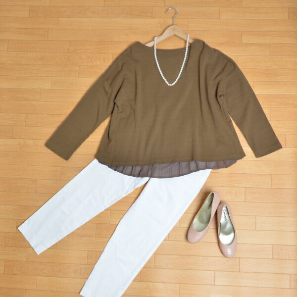 後ろ姿にも気を抜かない プリーツがポイント 異素材カットソー。