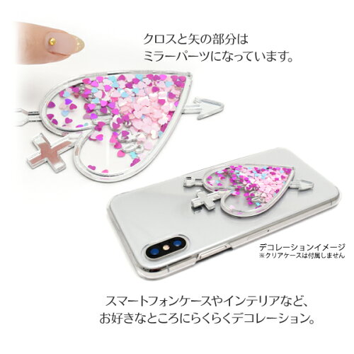 【 デコレーションパーツ クロスハート弓矢 】スマホ 携帯 デコパーツ カスタマイズ 材料 素材 ハンドメイド オリジナル ポップ かわいい 動く キュート デコ パーツ キラキラ ミラー加工 ハートラメ 十字架 アロー 矢 [5点までメール便発送OK]