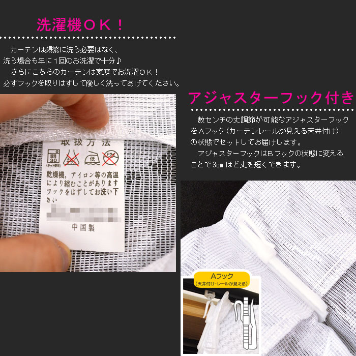 サイズ展開 巾(幅)100cm/2枚組み 巾(幅)150cm/1枚単品 巾(幅)200cm/1枚単品 100×133cm 2枚組み 100×176cm 2枚組み 100×198cm 2枚組み 150×176cm 1枚単品 150×228cm 1枚単品 200×176cm 1枚単品 200×228cm 1枚単品 ↑各サイズをクリックすると、そのサイズの販売ページに移動します↑ (注)巾はレールのフックからフックまで、高さはフックから下の長さです。