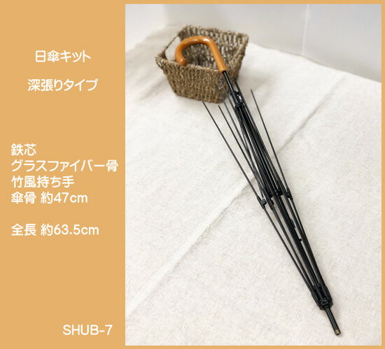 こちらのキットは傘骨(骨組み)サイズ約47cm・コロンとしたフォルムが特徴の深張りタイプです。